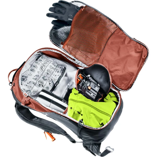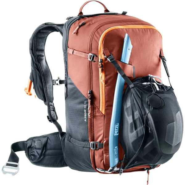 Met 30 liter opslagvolume voegt hij andere details toe die zijn doeltreffendheid in de sneeuw vergroten, zoals een beenriem die voorkomt dat hij wegglijdt bij begraving, een helmzak, lussen voor uitrusting en bevestigingsriemen zodat hij kan worden gedragen tijdens bergtochten.