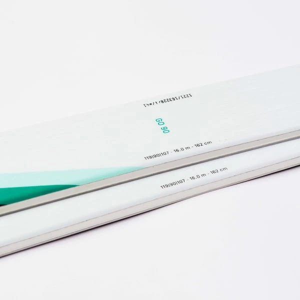 - Profiel: camber onder de voet, lichte rocker voor en achter.