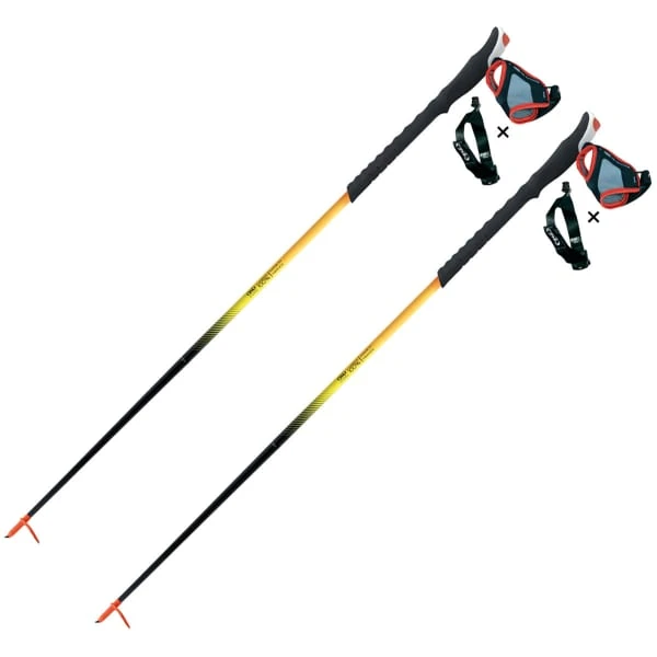 Met zijn volledige carbonstructuur is dit model zeer wendbaar en begeleidt het skiërs op een discrete en betrouwbare manier. De lange grip van EVA-schuim is perfect voor het aanpassen van de grip op afdalingen, en het combineert een Magnetic System band voor eenvoudige aanpassing met een standaard tip met een Crossover tip.